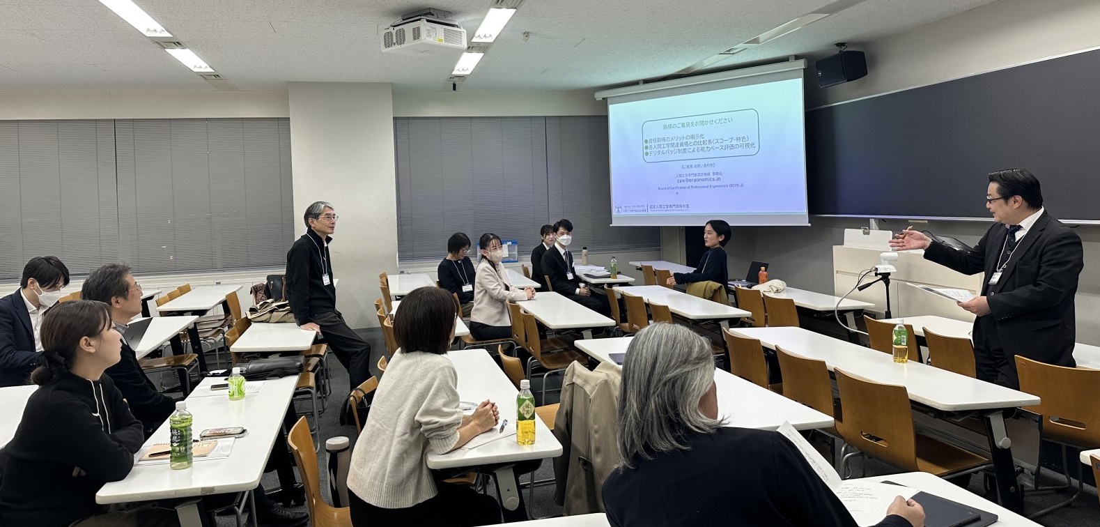 後半の意見交換では、榎原機構長の進行のもと、参加者を交えた自由闊達な議論が行われました。申請時に求められる書類の煩雑さや、試験用ガイドブックの内容が時代背景に即していない点など、資格制度運用上の課題が共有されたほか、CPE資格の社会的認知度向上や、認定者が専門性を対外的に示しやすくする仕組みの必要性についても意見が交わされました。また,将来資格取得を志す人材に向けた講座や学習機会の提供についても前向きな提案がなされました。