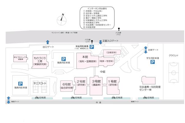 ■会場の概要 香川大学工学部(林町キャンパス) 〒761-0396 香川県高松市林町2217-20 ■公共交通機関でおこしの方 ◇最寄駅:ことでん太田(おおた)駅 <高松駅から> JR高松駅より徒歩でことでん高松築港駅に移動(徒歩2分)。 ことでん琴平線に乗車し,太田駅で下車(所要時間約13分,運賃310円,15分間隔で運行(7時以降))。 太田駅よりことでんバス「太田駅サンメッセ線」に乗車,「香川大学工学部前」にて下車(所要時間約11分,運賃100円)。 ※便数は少ないですが,JR高松駅からの直通バスもあります。 JR高松駅バスターミナル8番乗り場において「65 レインボー・サンメッセ・川島・フジグラン十川」行きに乗車,「香川大学工学部前で下車」(所要時間約32分,運賃410円)。 ※ことでんバスの時間および路線図に関する詳細は,以下記載のことでんホームページにてご確認ください(高松駅発の時刻表・運賃は「川島線」に掲載されています)。 http://www.kotoden.co.jp/publichtm/bus/rosen/bus-reru/bus-reru.html ■お車でおこしの方 ・高松自動車道「高松中央IC」より車で約5分。 工学部正面ゲートを開放致しますので,こちらから入構していただき,キャンパス内の駐車場をご利用ください。詳細は以下のホームページをご確認ください。 http://www.kagawa-u.ac.jp/kagawa-u_eng/hayashi/access/info_p/ ■周辺案内図